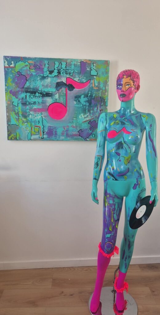 Met Symphony of Colors verbeeld ik cultureel erfgoed als een levende kracht. De muzieknoot en vinylplaat symboliseren muziek als drager van herinneringen en identiteit, doorgegeven van generatie op generatie. Het beschilderde lichaam staat voor de mens als drager van cultuur. De gelaagde kleuren tonen hoe tradities zich blijven ontwikkelen. Erfgoed is geen verleden tijd, maar een voortdurende beweging die ons verbindt en inspireert.